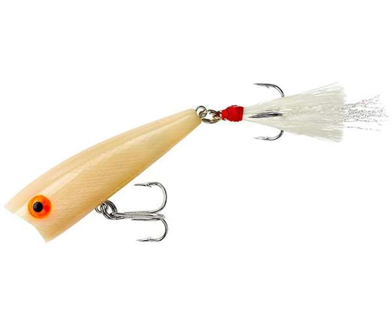 The Rebel P50 Teeny Pop-R has all of the features that made the larger version the most infamous lure in bass tournament history. The dressed back treble of the Rebel P50 Teeny Pop-R features flashy mylar, and the concave mouth chugs and pops on the surface to attract strikes. This small size catches bass, panfish and other gamefish with some of the most exciting topwater strikes you’ll ever experience.